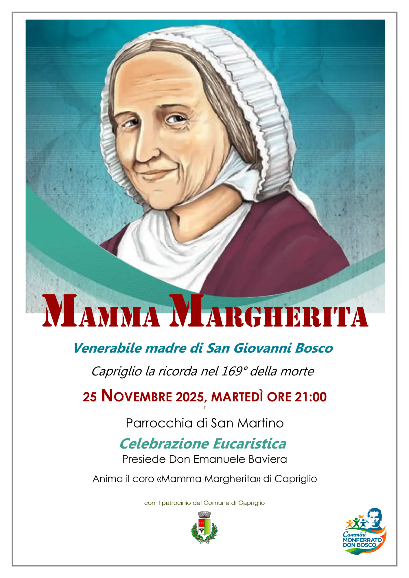 Capriglio ricorda la venerabile madre di San Giovanni Bosco nel 169° anno dalla sua morte, con una celebrazione eucaristica alle ore 21:00 presso la parrocchia di San Martino.